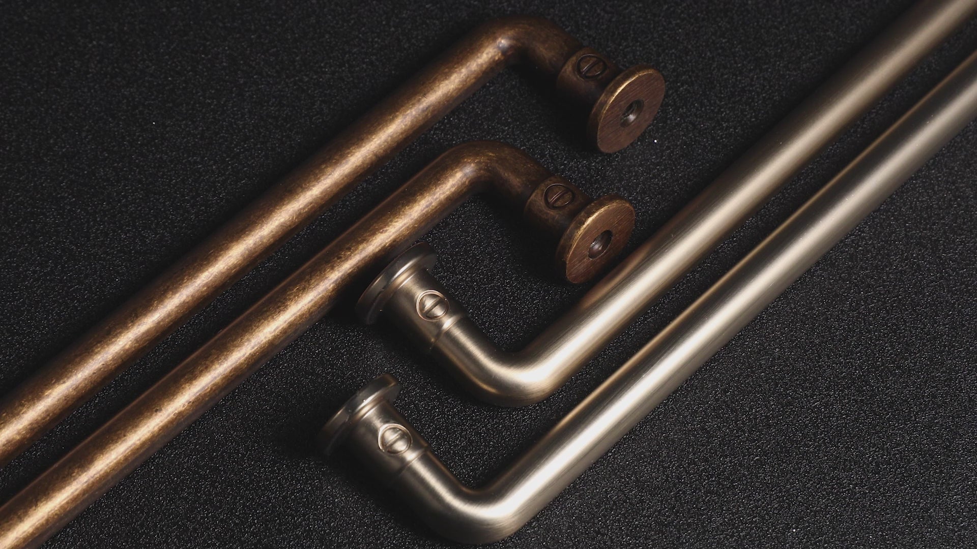 Product Description: These zinc alloy cabinet pulls feature a minimalist round bar design, available in both brushed brass and antique brass finishes to suit modern and industrial interiors. Crafted from heavy-duty zinc alloy, they offer a solid, premium feel while resisting daily wear and tear. The visible screw detail adds a subtle industrial touch, making them ideal for elevating kitchen cabinets, bathroom vanities, and furniture.