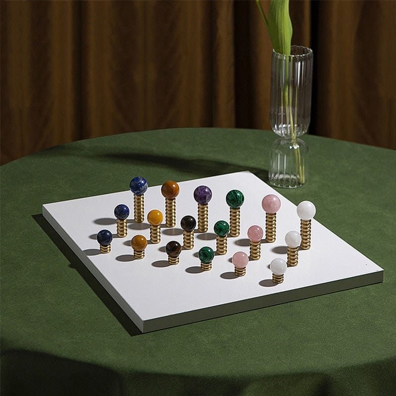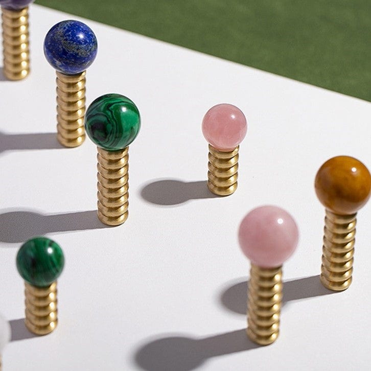 Crystal Jade Stone Knob Mid-Century Brass Cabinet Handle Furniture Hardware