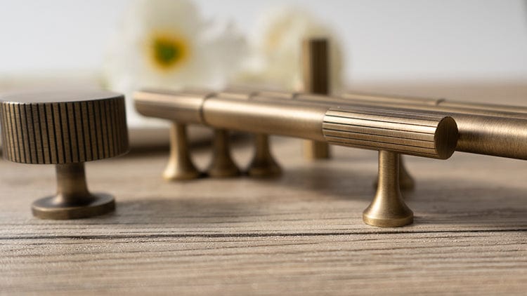 Antique Brass Fluted Cabinet Handles Linear Knurled Solid Brass Drawer Knobs